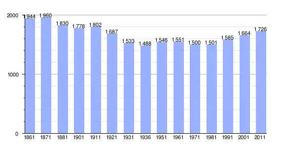 | Variação demográfica do município entre 1861 e 2011[3] |