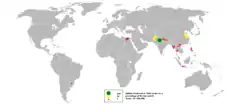 É um animal nativo do sudeste da Ásia, porém tem sido fortemente domesticado no Norte de África e no Oriente Médio, bem como a Austrália, Brasil e América Central. Os búfalos fortemente selvagens são encontrados na Índia, Nepal, Tailândia, Butão, Filipinas, Indonésia, Austrália, Camboja, Laos e Myanmar.
