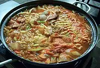 Budae-jjigae (부대찌개; literalmente “ensopado de base militar”) ou ensopado de salsicha é um tipo de jigae (ensopado) feito com presunto, salsicha, feijões cozidos e kimchi.[1] O prato foi criado logo depois do armistício que encerrou a Guerra da Coreia, usando comida roubada ou contrabandeada do estoque excedente das bases militares estadounidenses. 2 Apesar do prato ter sido desenvolvido no período de pobreza do pós-guerra, ele continuou sendo popular durante o crescimento econômico da Coreia e é popular até hoje. Existem restaurantes especializados em budae-jjigae, e o prato é agora um comum anju (aperitivos que acompanham o consume de bebida alcoólica) e um almoço rápido em bairros universitários.[2][3]