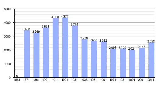 | Variação demográfica do município entre 1861 e 2011[3] |