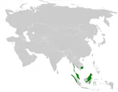 Pode ser encontrada nos seguintes países: Brunei, Camboja, Indonésia, Malásia, Myanmar, Tailândia e Vietname.[1]