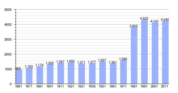 | Variação demográfica do município entre 1861 e 2011[3] |