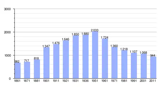 | Variação demográfica do município entre 1861 e 2011[3] |