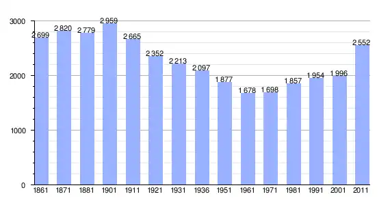| Variação demográfica do município entre 1861 e 2011[3] |