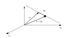 Seja . Seja um vetor cuja origem é a origem das coordenadas e cujo extremo e um vetor arbitrário de . Definimos a derivada de f em em relação a como