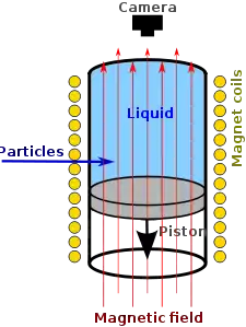 Muitas vezes é útil submeter toda a câmara a um campo magnético constante. Ele atua sobre partículas carregadas através da força de Lorentz e faz com que elas viajem em trajetórias helicoidais cujos raios são determinados pelas razões carga-massa das partículas e suas velocidades. Como a magnitude da carga de todas as partículas subatômicas conhecidas, carregadas e de vida longa é a mesma de um elétron, seu raio de curvatura deve ser proporcional ao seu momento . Assim, medindo o raio de curvatura de uma partícula, seu momento pode ser determinado.