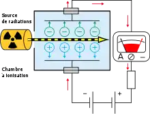 As câmaras de ionização medem as cargas depositadas pela partícula carregada ao atravessar o meio ionizado que tanto pode ser um gás como um líquido ou mesmo um sólido, cada um tendo as suas vantagens e as suas aplicações.[1]
