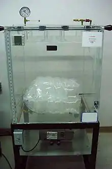 Uma câmara de vácuo é um instrumento de laboratório de paredes rígidas que contém uma câmara da qual se extrai ar e outros gases mediante uma bomba de vácuo. A baixa pressão resultante, comumente chamada vácuo, permite aos investigadores executar experiências físicas ou testar dispositivos mecânicos que devem operar, por exemplo, no espaço exterior. Câmaras de alumínio permitem controlar que o campo magnético interior saia fora do vácuo. Pelo contrário, as câmaras hechas de mu-metal evitam que os campos externos penetrem no vácuo.