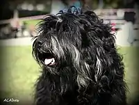 | Pelagem | Liso ou ligeiramente ondulado, comprido, de textura cáprea, seca e áspera ao toque. Muito longo na cabeça, forma bigode e longas barbas.