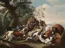Cães de presa agarram fisicamente o javali, normalmente aproveitando a base da orelha do animal. Uma vez que os cães de presa possuem o controle físico do javali, eles vão segurá-lo indefinidamente até que o caçador chegue. O caçador então vem atrás do javali e o abate com uma faca ou uma lança.