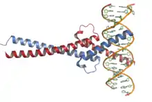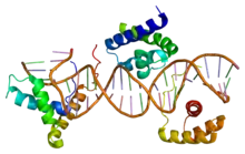 - MYC: é um fator de transcrição que regula milhares de genes em células-tronco pluripotentes e possivelmente contribui para a ação de todos os genes transcritos. MYC possui grande importância na regulação celular e no estabelecimento de um estado de pluripotência. Acredita-se que a elucidação dos mecanismos de ação deste fator venha a ser de grande importância para pesquisas principalmente na área de biologia do câncer [20]. Em sua estrutura, MYC possui uma região com dois motivos estruturais, uma básica Helix-loop-helix (bHLH) e um zíper de leucina (LZ), o primeiro permite que a MYC se ligue ao DNA enquanto que o segundo motivo permite que a proteína interaja com outro fator de transcrição denominado MAX [21].