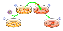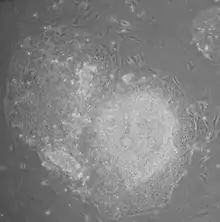 - Uma pequena parcela dessas células transfectadas (0,01-0,1% [25]) ganham características de células-tronco pluripotentes e geram colônias.