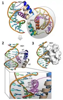 - NANOG: Este fator de transcrição possui este nome em homenagem à uma terra de uma lenda Irlandesa que possui a fonte da juventude eterna, Tír Na nÓg [15] e, é considerado crucial para a indução da pluripotência. Embora sua ausência não cause a diferenciação de células embrionárias e sua presença não aja como gatilho para a desdiferenciação celular, este fator é importante para a transição entre células-tronco embrionárias com pluripotência induzida incompleta, para células-tronco com pluripotência induzida completa. Deste modo ainda possui um papel crucial na reprogramação de células humanas, apesar de possuir um mecanismo de ação ainda pouco elucidado [16]. A proteína de Nanog possui ortólogos em humanos, ratos, chimpanzés e cachorros, mas análises filogenéticas mostram que ela não possui nenhum homólogo, o que sugere que esta seja uma proteína com homeobox único. Em termos estruturais, Nanog é uma proteína de três domínios, um N-terminal, com 96 aminoácidos e rico em serina. Um homeodomínio, que mostra alguma semelhança com a família NK2 de genes homeobox, mas que possui uma identidade de aminoácidos de menor que 50%. Por fim um C-terminal, com um domínio bem conservado de 50 aminoácidos com repetição de triptofano a cada 4 aminoácidos [17].