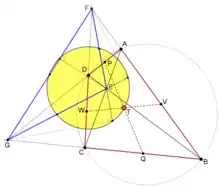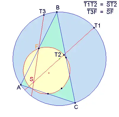 O centro do triângulo no qual o círculo e o círculo de nove pontos tocam é chamado de ponto de Feuerbach.