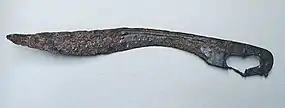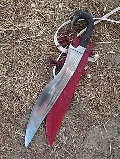 No século II d.C nas "Metamorfoses"[23] de Apuleio o vocábulo cópis já é usado para descrever uma arma de caça, de lâmina recôncava.