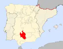 | Fronteiras: | Málaga, Badajoz, Sevilha, Cidade Real, Jaén e Granada |