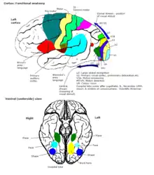 Todo o córtex cerebral foi dividido em 52 áreas diferentes numa apresentação inicial de Korbinian Brodmann . Estas áreas, conhecidas como áreas de Brodmann, baseiam-se na sua citoarquitetura, mas também se relacionam com diversas funções. Um exemplo é a área 17 de Brodmann, que é o córtex visual primário .