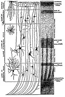 A coloração de seções transversais do córtex para revelar a posição dos corpos celulares neuronais e dos tratos axônicos intracorticais permitiu que os neuroanatomistas no início do século 20 produzissem uma descrição detalhada da estrutura laminar do córtex em diferentes espécies. O trabalho de Korbinian Brodmann (1909) estabeleceu que o neocórtex dos mamíferos é consistentemente dividido em seis camadas.