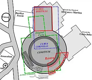 Em 44 a.C., a Cúria foi convertida em templo por Júlio César em sua remodelagem do Fórum. Não se sabe exatamente quando o edifício foi finalmente demolido, mas como ele ocupava grande parte do que depois seria o Fórum de César, é provável que tenha sido durante ou logo depois da construção do primeiro fórum imperial.