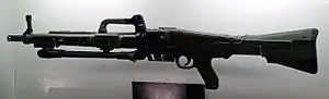 | Sistema de suprimento | Fita de 100 ou 200 munições |