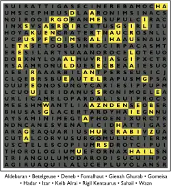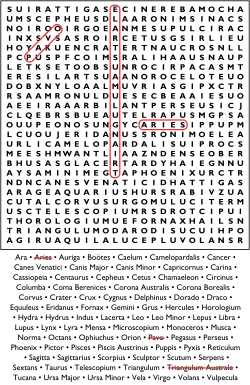 Se uma lista da palavra não for fornecida, uma boa maneira de se encontrar rapidamente palavras é ir linha por linha. Primeiramente, todas as linhas horizontais devem ser lidas de frente para trás e vice-versa, e então deve se ler as colunas vertical, etc..