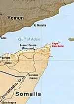 Situa-se na Somália, na entrada do Golfo de Aden e Mar Arábico.