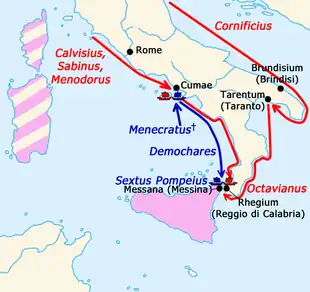 ↗ — Ações dos almirantes de Sexto Pompeu.