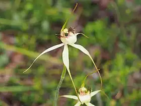 São plantas com uma única folha basal pubescente com marcas proeminentes púrpura perto da base, e uma inflorescência rija, fina e densamente pubescente, com uma ou poucas flores, que vagamente lembram uma aranha, muito estreitas, caudadas, e bem esparramadas, normalmente pendentes. Em conjunto formam grupo bem vistoso quando sua floração é estimulada por incêndios de verão.[2]