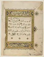A caligrafia árabe é uma arte decorativa própria dos povos que utilizam o alfabeto árabe e suas variantes, na escrita, e por extensão, na confecção de livros. Como parte da cultura árabe, essa caligrafia foi utilizada por séculos na preservação do Alcorão.
