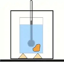 A capacidade calorífica de um corpo é determinada com ajuda de um calorímetro e um termômetro. Um calorímetro simples (veja a figura) consiste num cilindro metálico polido, colocado num outro cilindro metálico sobre cortiça (para isolamento térmico).[7]