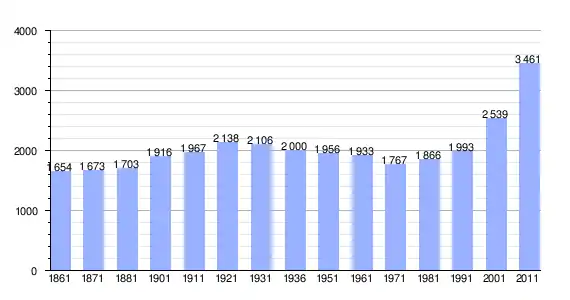| Variação demográfica do município entre 1861 e 2011[3] |
