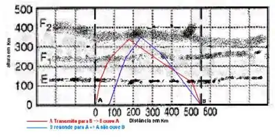 Algumas comunicações de rádio se dão de forma interessante quando ocorre a reflexão parcial na camada F1 e total na camada F2, muitas vezes ocorre o fenômeno da comunicação unidirecional.
