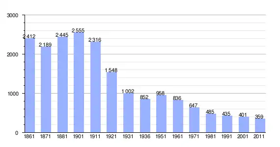 | Variação demográfica do município entre 1861 e 2011[3] |