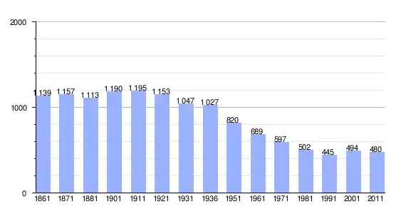 | Variação demográfica do município entre 1861 e 2011[3] |