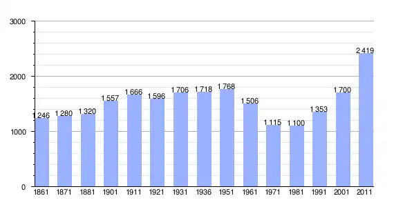 | Variação demográfica do município entre 1861 e 2011[3] |