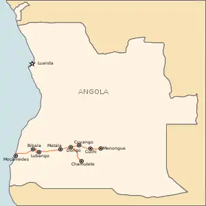 Mapa da Rede ![]() Traçado do Caminho de Ferro de Moçâmedes, incluindo o Ramal Jamba-Chamutete.