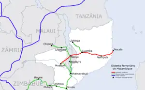 Mapa da Rede ![]() Percurso do Caminho de Ferro de Nacala destacado em vermelho
