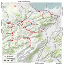 Parte de Rorschach, junto ao lago de Constança até Heiden. A RHB é conjuntamente com o caminho de ferro do Rigi, a mais antiga linha de montanha da Suíça.