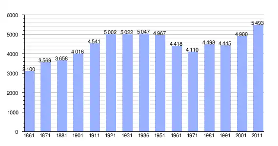| Variação demográfica do município entre 1861 e 2011[3] |