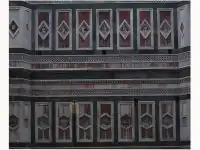 Um detalhe curioso: no revestimento de mármore do último andar foram empregados lâminas de mármore branco com desenhos em estilo românico, talvez restos provenientes das obras do Batistério.