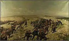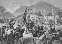 ![]() Acampamento austro-húngaro perto de Mostar, pintado por Alexander Ritter von Bensa e Adolf Obermüller | |||
