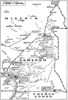 Camarões (actual Camarões e parte da actual região leste da Nigéria), tinha uma guarnição de 1 000 soldados alemães apoiados por 3 000 soldados africanos. Inicialmente, os britânicos atacaram fora da Nigéria seguindo três rotas diferentes a leste para os Camarões. Contudo, todas as três colunas foram derrotadas devido a uma combinação do terreno, percursos difíceis e emboscadas pelos alemães. Os franceses atacaram a sul do Chade e capturaram Kusseri. No início de Setembro, uma força franco-belga, na sua maioria do Congo Belga, capturou Limbe na costa.Com a ajuda de quatro cruzadores britânicos e franceses, que providenciavam fogo de apoio, juntamente com an improvised flotilla of costal and riverine craft, os Aliados capturaram a capital colonial de Douala a 27 de Setembro de 1914. A guarnição alemã em Garoua caiu nas mãos dos britânicos em Junho de 1915.[1]