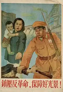 A campanha de repressão aos contrarrevolucionários (zhen fan 镇 反, ou Zhenya fan'geming 镇压 反革命, "reprimir os contrarrevolucionários" ) começou em março de 1950, quando o Comité Central do Partido Comunista da China emitiu uma ordem: Instrução sobre a repressão severa de atividades contrarrevolucionárias (关于 严厉镇压 反革命分子 活动 的 指示).[1] Foi a primeira campanha lançada pela República Popular da China destinada a erradicar os elementos da oposição, especialmente ex-funcionários do Kuomintang com alegada tentativa de minar o novo regime. De acordo com as estatísticas oficiais do Partido Comunista Chinês (PCC) e do governo chinês em 1954, pelo menos 2,6 milhões de pessoas foram presas na campanha e 712 mil pessoas foram executadas.[2][3] No entanto, acadêmicos e pesquisadores deram um número estimado de mortes mais alto (em milhões).[1][4][5] Os objetivos de tais grandes campanhas políticas receberam rótulos políticos negativos iguais ao atribuídos a um estatuto de classe. Os alvos durante a campanha para eliminar os contrarrevolucionários em 1951, foram posteriormente rotulados como "contrarrevolucionários", como "malditos e seus descendentes a partir desse ponto." Um número significativo de "contrarrevolucionários" foram presos e executados, e a maioria condenados a "reforma através do trabalho" (laodong gaizao 劳动 改造).[6]