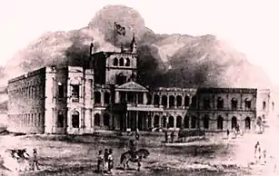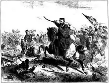 ![]() Duque de Caxias comandando as forças aliadas na Batalha de Lomas Valentinas, umas das batalhas mais importantes e sangrentas da guerra | |||