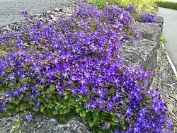 Em razão de preferir lugares íngremes e de na primavera–verão florir em profusão flores em formato de estrela, isso lhe valeu a denominação popular de "campânula-cascata-azul" e "campânula-estrela-azul."
