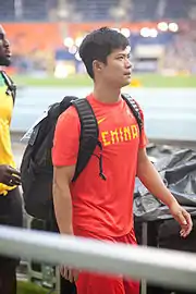 Su Bingtian da China, vencedor dos homens de 100 metros.