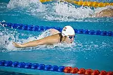 A nadadora de Cingapura Tao Li conquistou a medalha de ouro com o tempo de 56,85 segundos nas finais da prova de 100 metros em pista curta (25 metros) borboleta na Copa do Mundo de Natação FINA/Arena, realizada na Escola de Esportes de Cingapura.