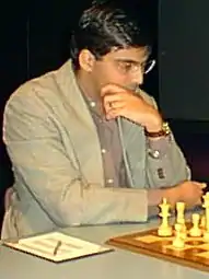 Campeonato Mundial de Xadrez de 2000 FIDE 1 2 3 4 5 6 Total Alexei Shirov ½ 0 0 0 - - ½ Viswanathan Anand ½ 1 1 1 - - 3½