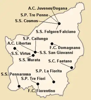 | Pennarossa | Juvenes/Dogana | 3–2 | 21 de setembro de 2019 | 1ª | |