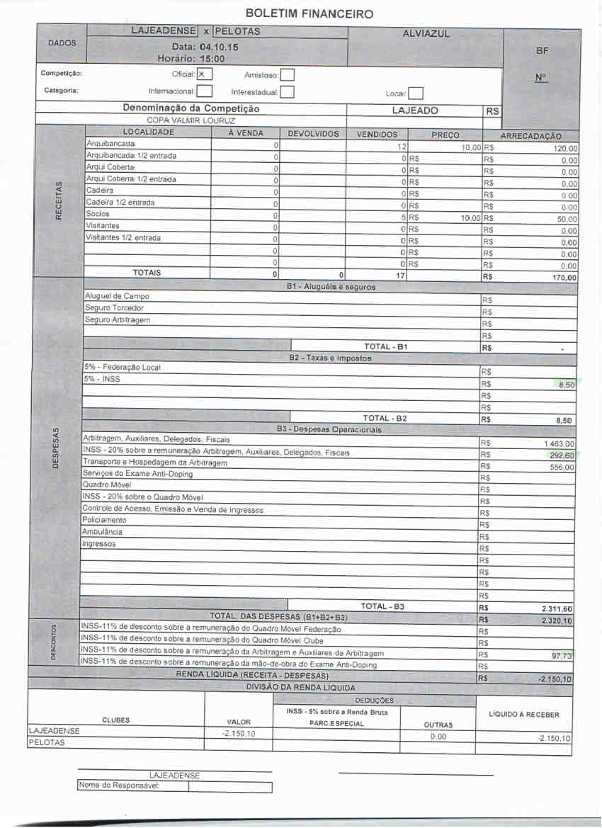 Público: 35 Renda: R$ 400,00 Árbitro: |